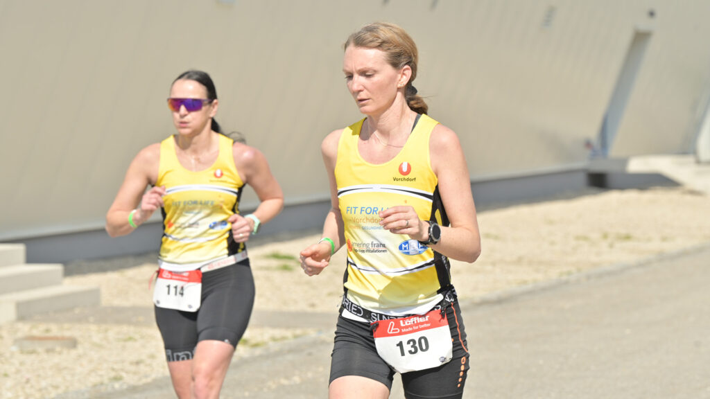 Kolleg(inn)en absolvieren in 3er-Teams (Damen, Herren & Mix) jeweils 4 km, die Endzeiten werden summiert.