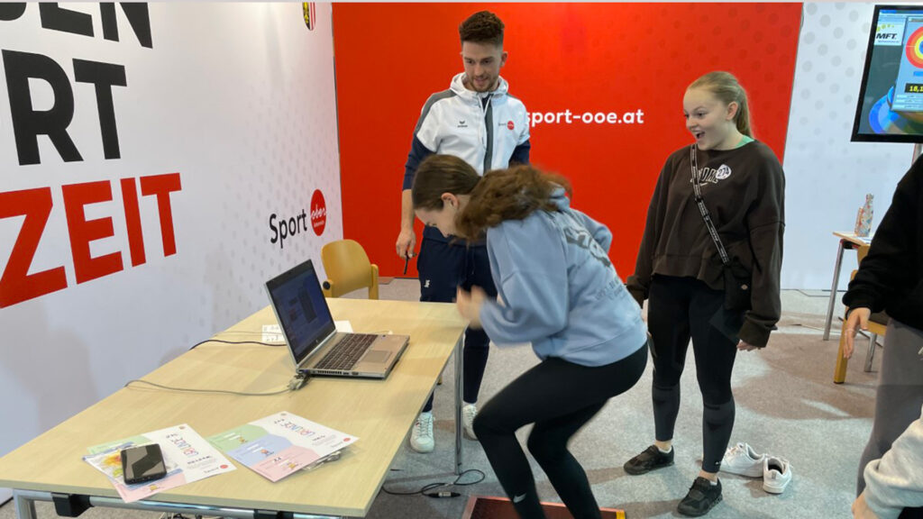 Am Stand des Sportlandes OÖ können alle jungen Besucher/innen kostenlos sportmotorische Tests absolvieren.